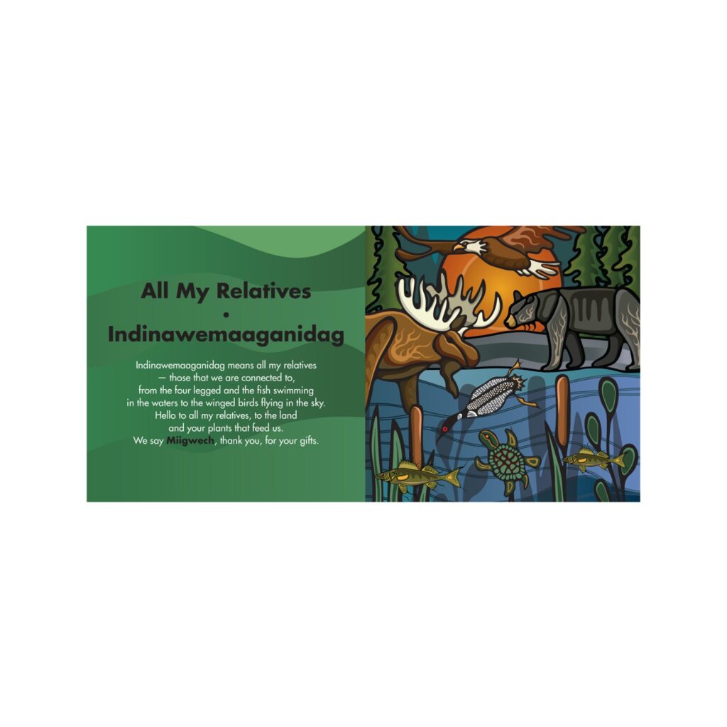 Join artist and author, Storm Angeconeb, Lac Seul First Nation, Ojibwe as she gives thanks to her relatives in her first published children's book. In All My Relatives - Indinawemaaganidag, Storm shares the intimate relations between the natural world, her family and their traditions. Storm gives thanks to each animal in Ojibwe in this first-of-its-kind board book featuring her beautiful, colourful Ojibwe art.