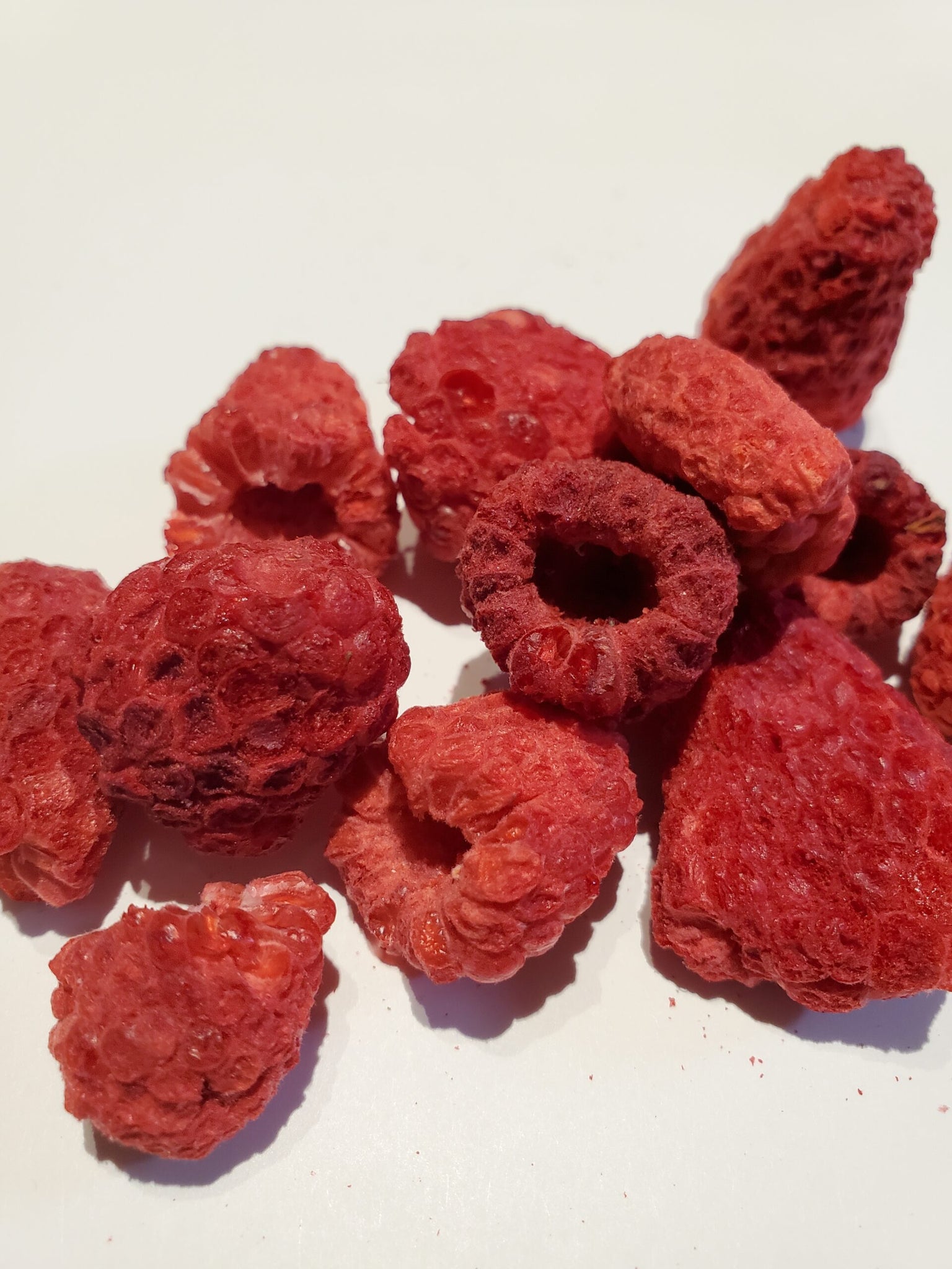 Red Dwarf Stars (freeze-dried BC grown raspberries) are deliciously light, cosmically crunchy, and bursting with red berry flavour. Snack on flavourful local BC berries year-round. These tart little stars are amazing on their own or as a pantry hero—they're shelf-stable enough to survive a light-year (at least more than 25 years)! Sprinkle over cereal, yogurt, pancakes, or waffles for a fruity lift-off.