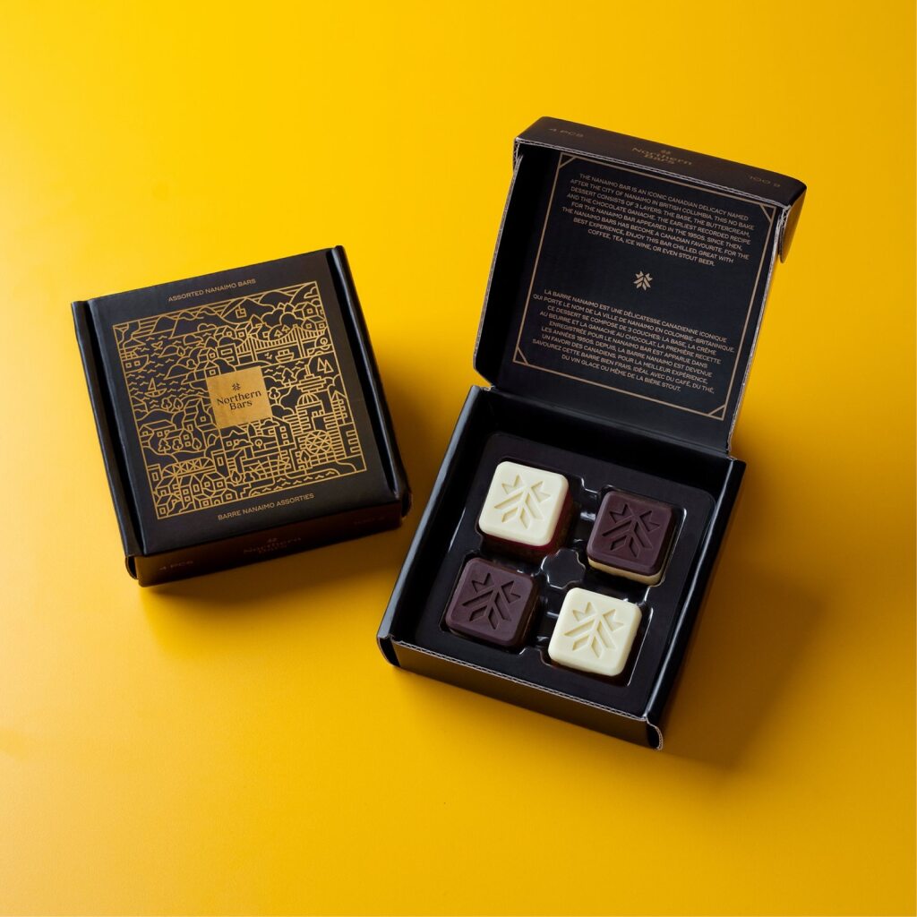 - Classic Nanaimo Bar (dark chocolate ganache, custard buttercream and coconut base)